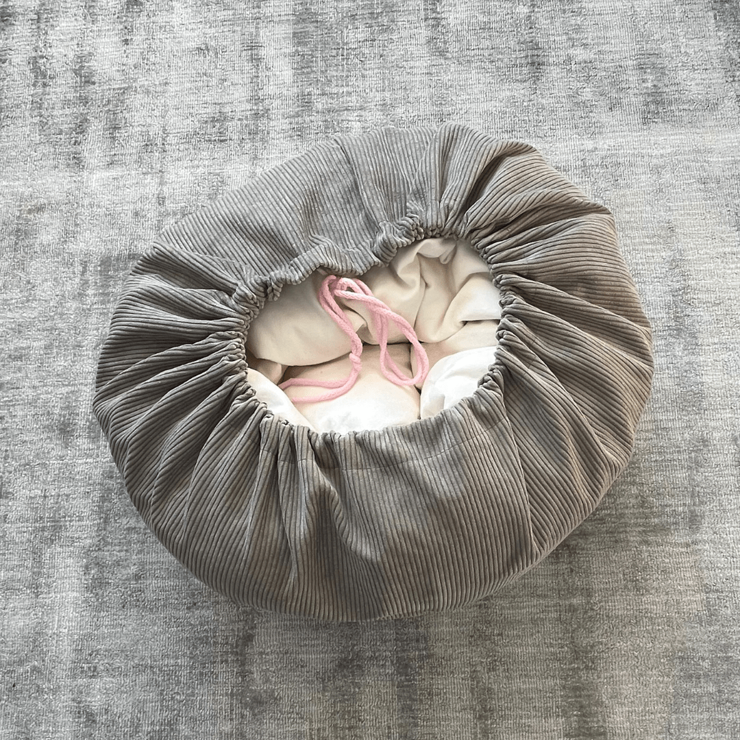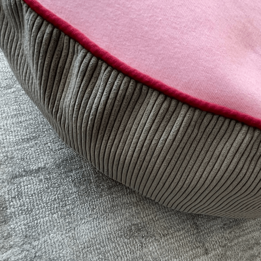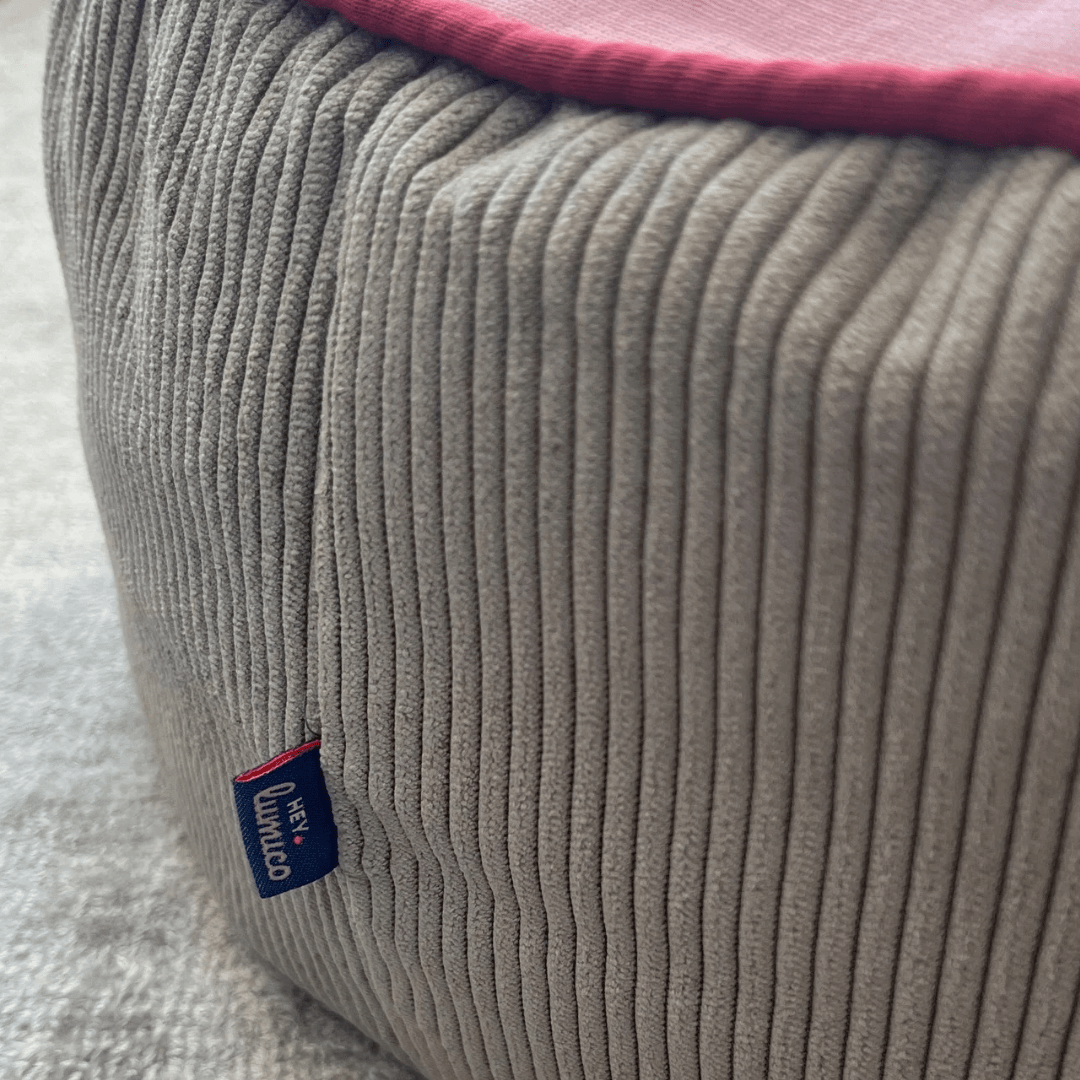 Der Bezug ist aus einem hochwertigen OEKO-Tex zertifizierten Polstercord und weichem Sweatstoff gefertigt. Sanft zur Haut und gleichzeitig widerstandsfähig auf der Auflagefläche.